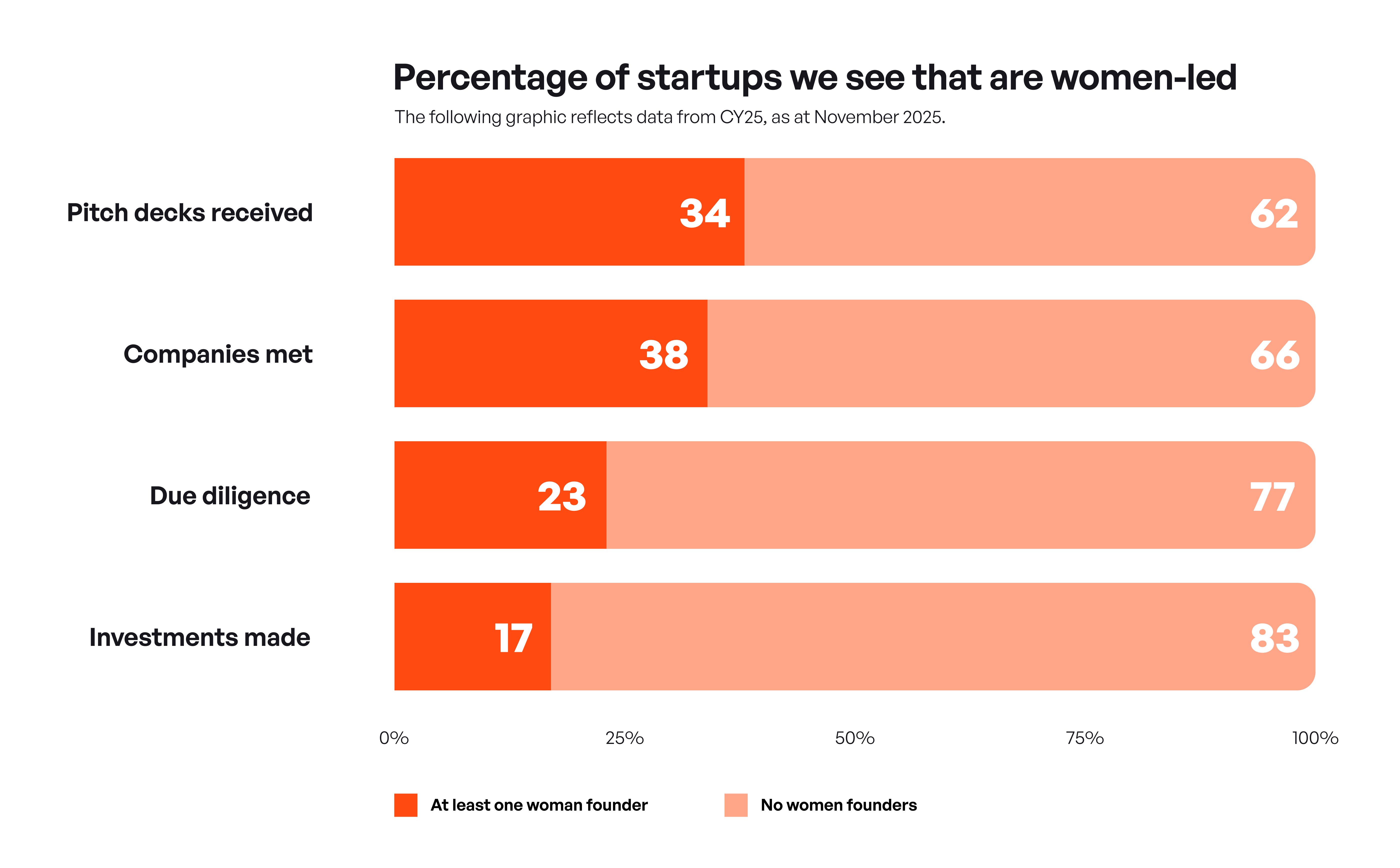 In 2024, only 2% of VC funding in Australia went to solely women-founded businesses. As an industry, we need to do more to find, invest in and support incredible women building the next generation of great Australian companies.